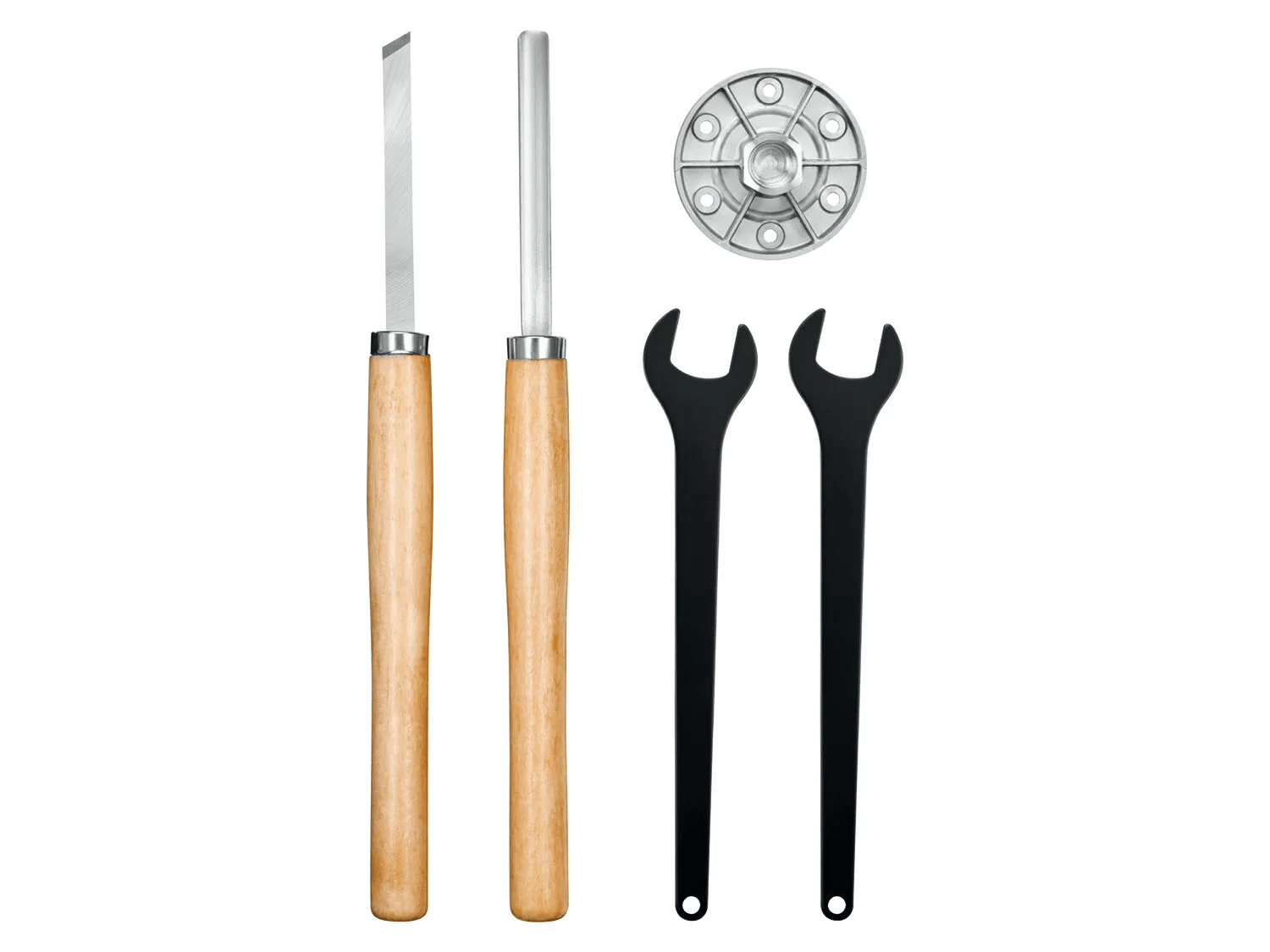 شامل لوازم جانبی: 1 دیسک صورت (Ø 8 سانتی متر), اسکنه ترنر 2 (شکل تمایل / شکل توخالی), 2 آچار چنگال